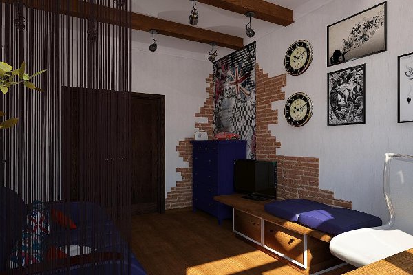 When decorating a room for a young man, furniture without doors, preferably a light shade, is suitable. Expedite racks and small wicker boxes perfectly accommodate everything you need to work. Bed-loft or pull-out bed-chest of drawers is also an excellent solution for saving space.