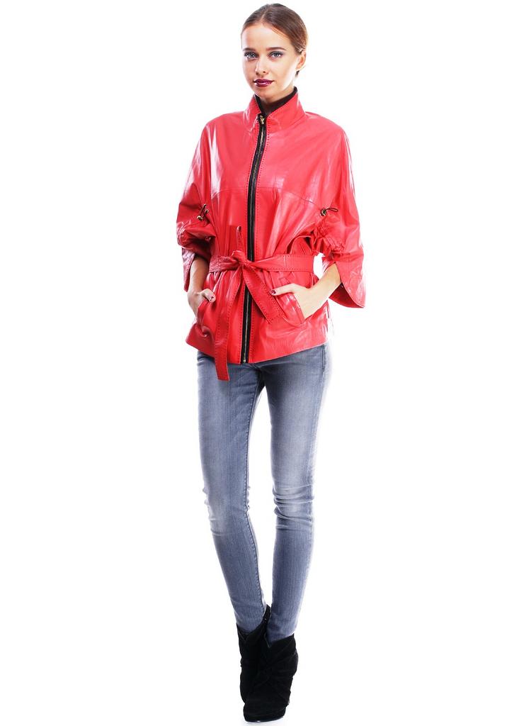 - coral leather jacket is suitable for shorts , but in this case it is worthwhile to dwell on the shortened model of black shade. So you will get an incredibly fashionable, stylish and sexy image, which, however, will not be too vulgar and aggressive.